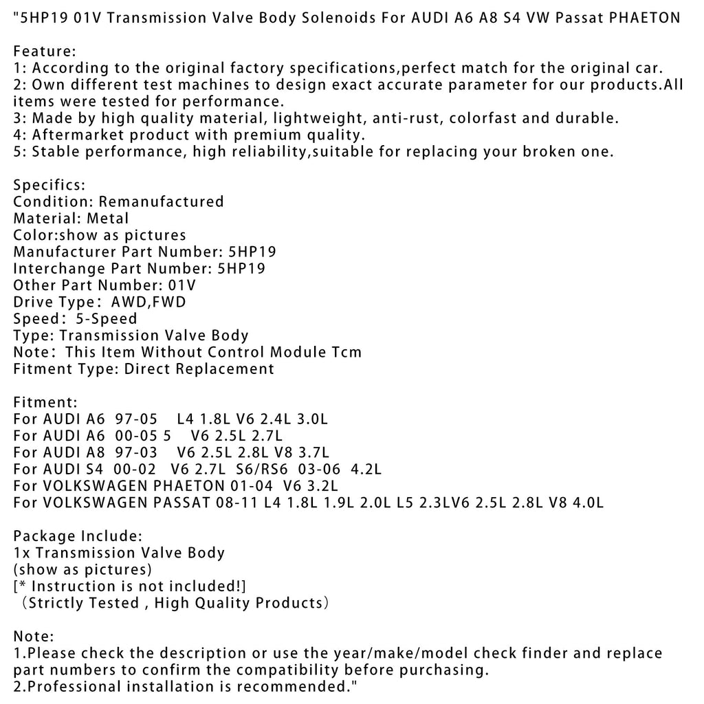 5HP19 01V Solenoidi corpo valvola trasmissione per AUDI A6 A8 S4 VW Passat PHAETON