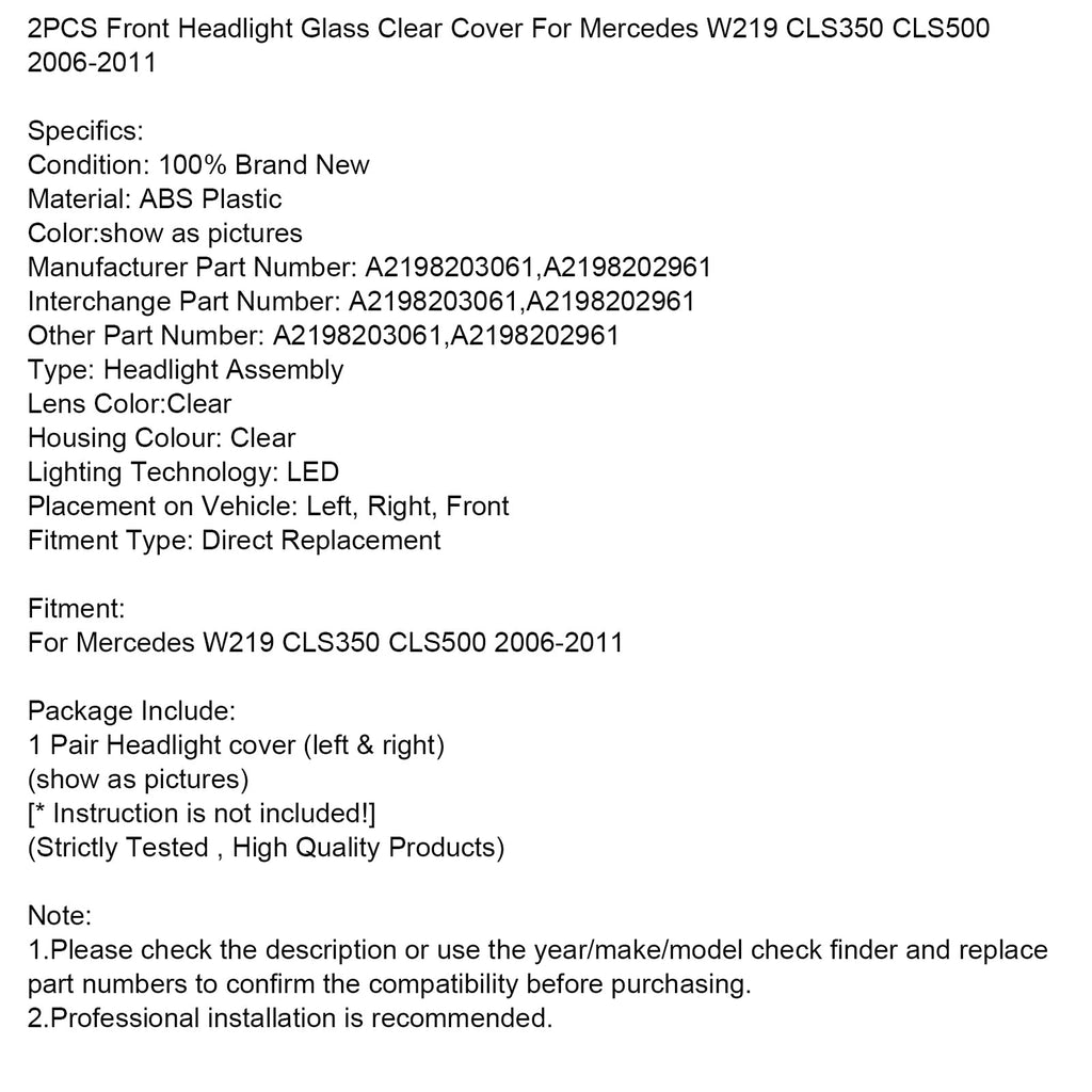 Set di 2 copri fari trasparenti per Mercedes W219 CLS350 CLS500 2006-2011