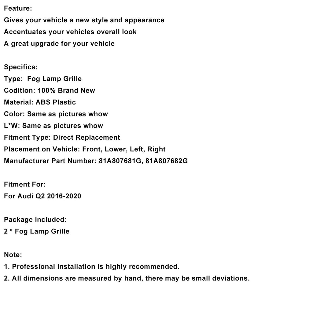 2 griglie paraurti anteriore con fendinebbia 81A807681G compatibili con Audi Q2 2016-2020