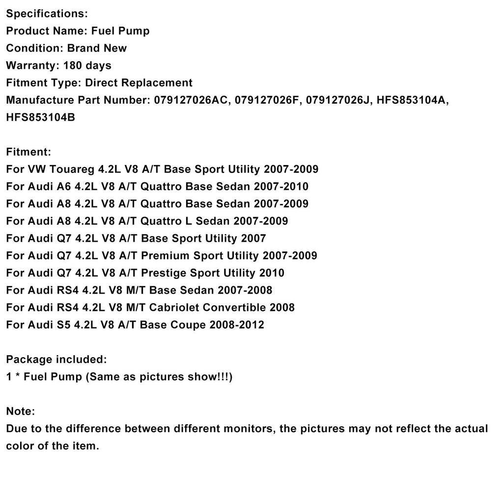 Pompa carburante ad alta pressione destra 079127026AC compatibile con Audi A6 Quattro 2007-2008 e VW 4.2.