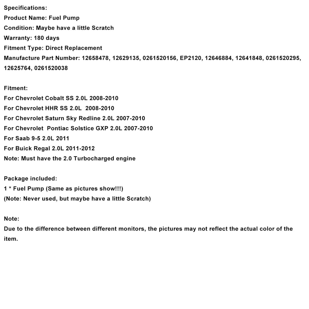 Pompa carburante ad alta pressione 12658478 compatibile con Chevy Cobalt SS 2.0L 2008-2010 12629135