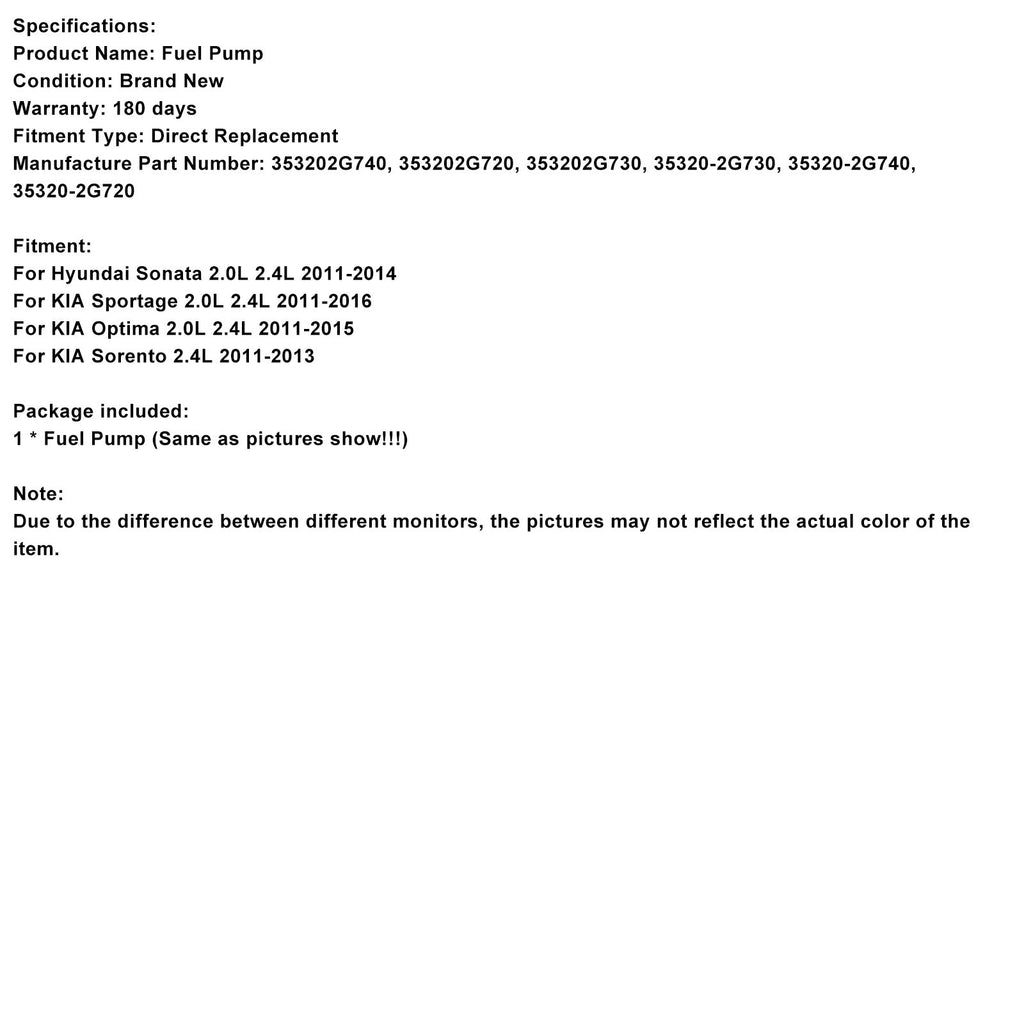 Per Hyundai Sonata 2.0L 2.4L 2011-2014