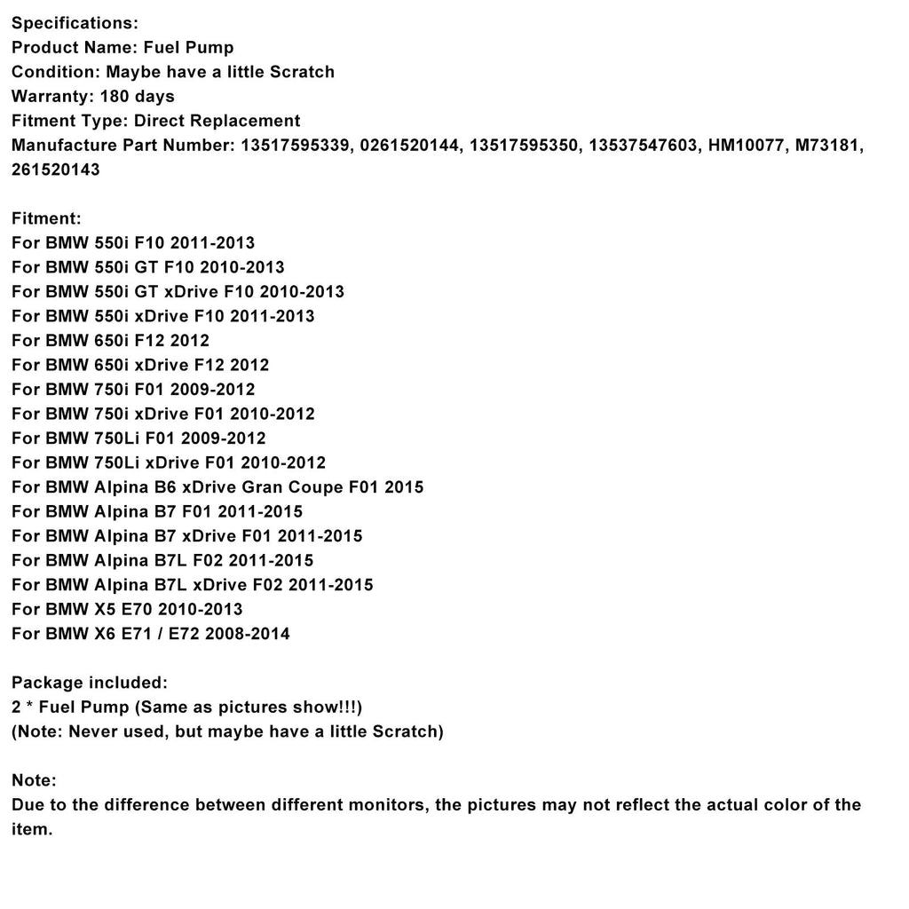 Set di 2 pompe carburante ad alta pressione 13517595339 compatibili con BMW F01 F10 E70 X5 E70 V8 4.4L