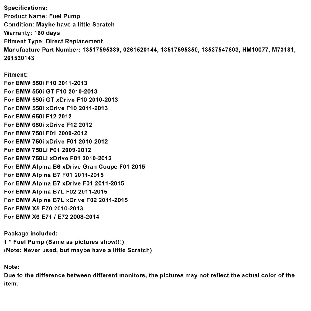 Pompa carburante ad alta pressione 13517595339 compatibile con BMW F01 F10 E70 X5 E70 V8 4.4L