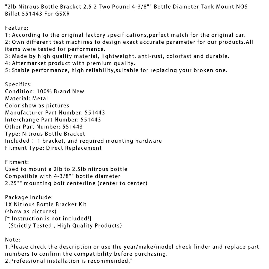 Supporto per bombola di azoto da 2 libbre, 2,5-2,2 libbre, diametro bombola 4-3/8", supporto per serbatoio in billet NOS 551443 per GSXR