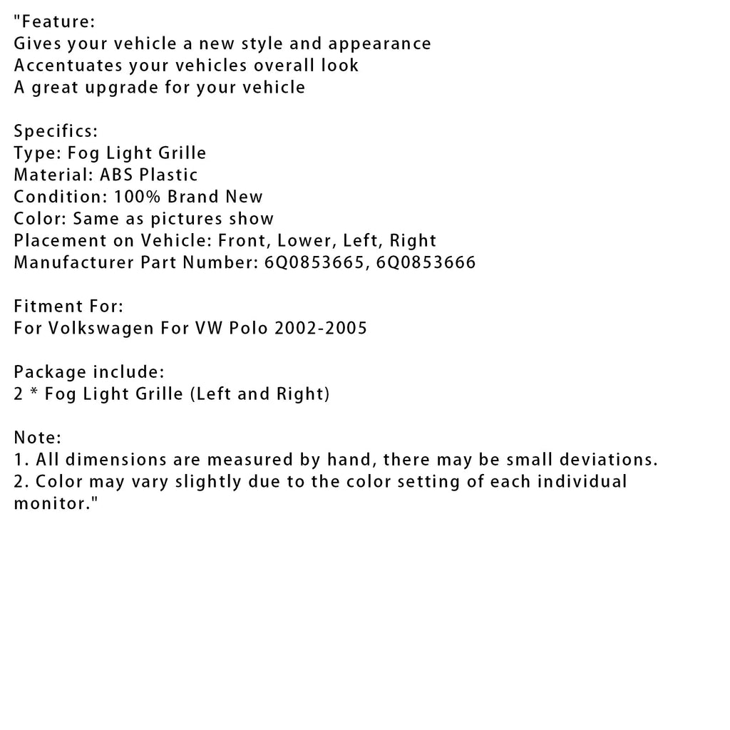 Set di 2 griglie di protezione inferiori per fendinebbia anteriori per VW Polo 2002-2005