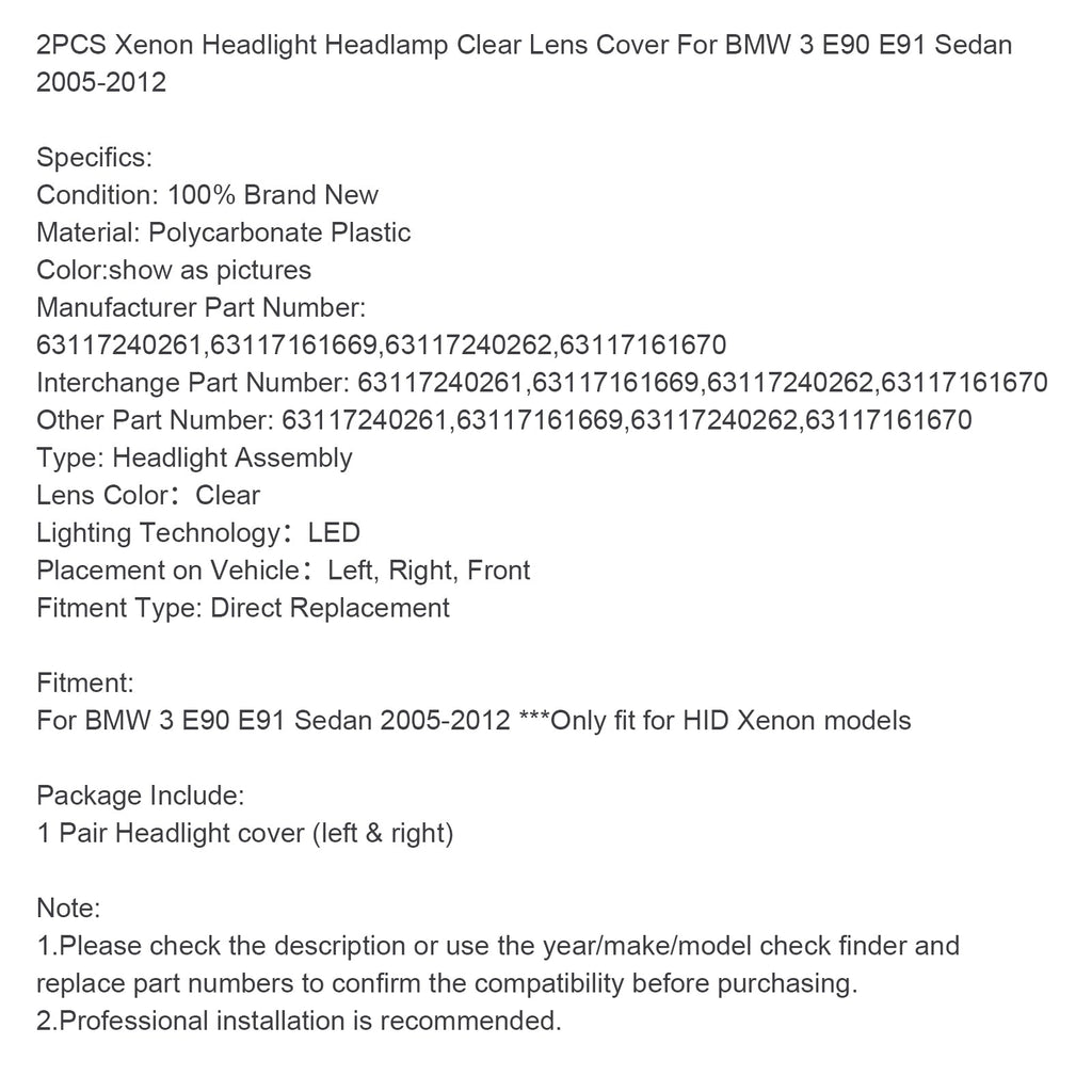 Set di 2 coperture trasparenti per fari allo xeno per BMW Serie 3 E90 E91 Berlina 2005-2012