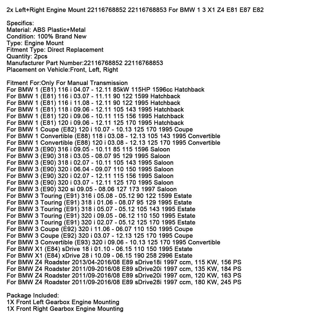 2x Supporto motore sinistro + destro 22116768852 22116768853 per BMW 1 3 X1 Z4 E81 E87 E82