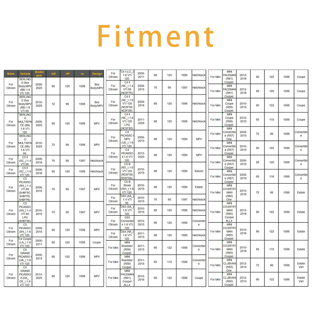 Compatibile con Peugeot 3008 1.6 VTi 09-16