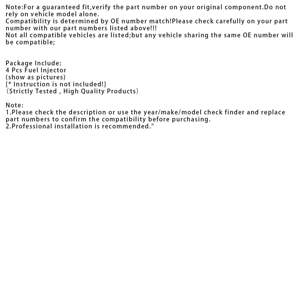 5 Questi iniettori di carburante ad alta impedenza sono stati testati a 100 % e corrispondono esattamente alla resistenza interna della bobina e al flusso di carburante degli iniettori originali. Le caratteristiche di flusso e atomizzazione del carburante di questi iniettori sono pressoché identiche o migliori di quelle degli iniettori originali e contribuiranno a tempi di risposta più rapidi, risparmio di carburante e migliore efficienza del carburante.