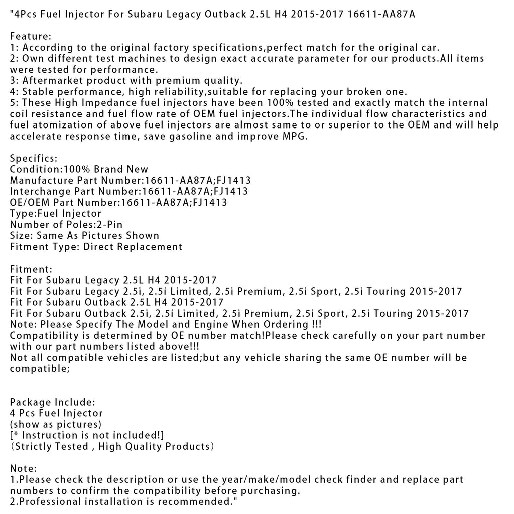 4 iniettori di carburante compatibili con Subaru Legacy Outback 2.5L H4 2015-2017 16611-AA87A