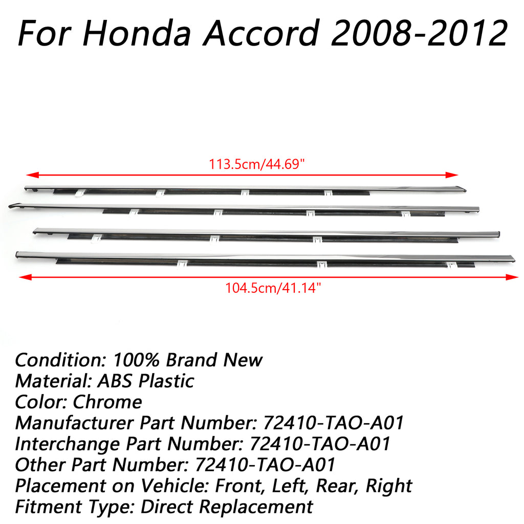 Set di 4 guarnizioni cromate per modanature dei finestrini per Accord 2008-2012