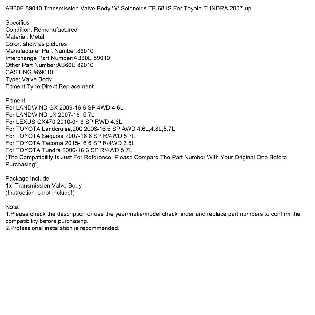 AB60E 89010 Corpo valvola di trasmissione con solenoide TB-681s per Toyota Tundra dal 2007 in poi