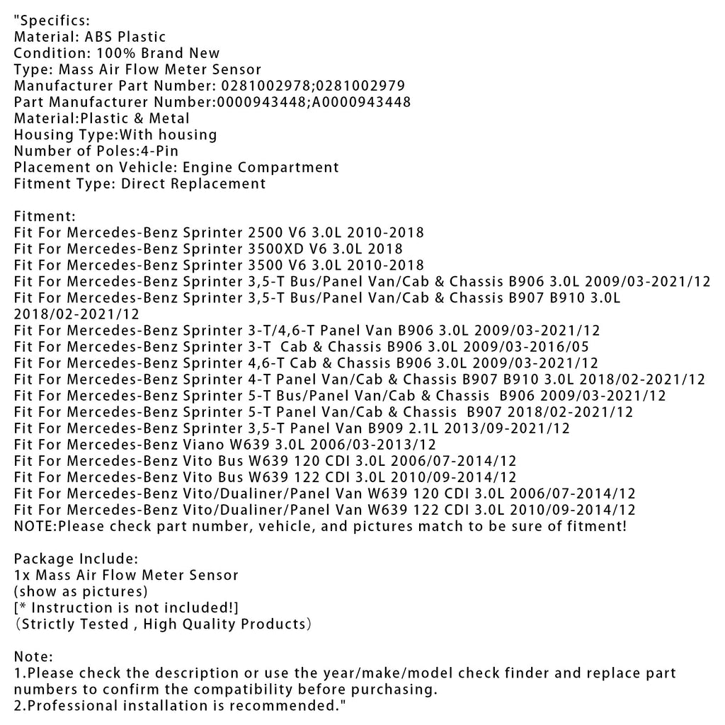 Adatto per Mercedes-Benz Sprinter 3-T/4.6-T Van B906 3.0L 2009/03-2021/12