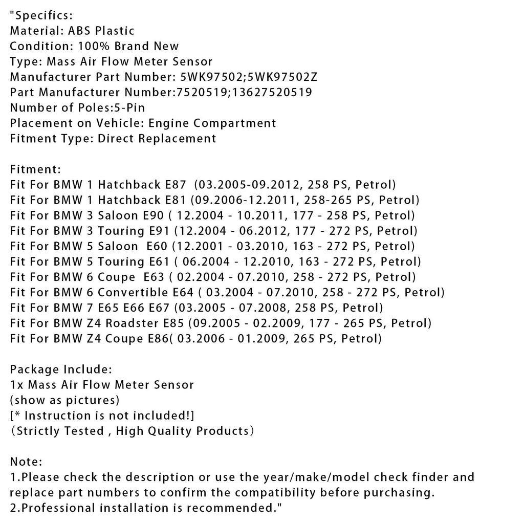 Sensore del flusso d'aria di massa per BMW E60 E61 E63 E64 E87 E90 E91 5WK97502