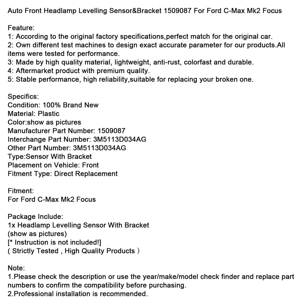1509087 Sensore e staffa per il livellamento automatico dei fari anteriori per Ford C-Max Mk2 Focus