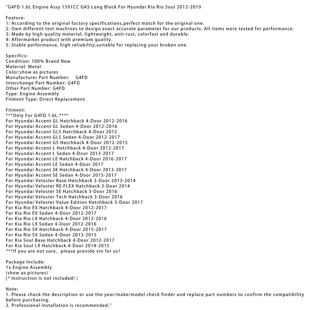 Gruppo motore G4fd 1.6l 1591cc Gas blocco lungo per Hyundai KIA Rio Soul 2012 - 2019