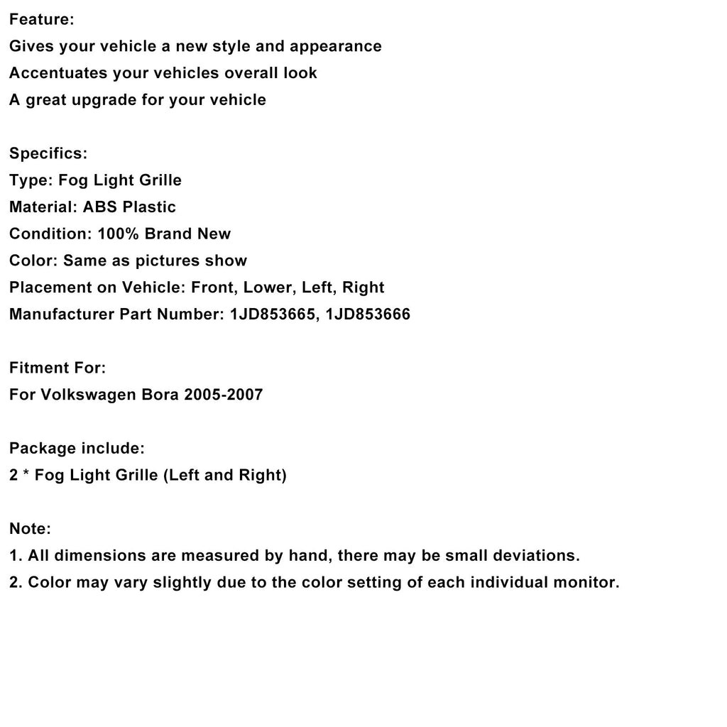 Griglia fendinebbia anteriore a nido d'ape nera compatibile con Volkswagen Bora 2005-2007