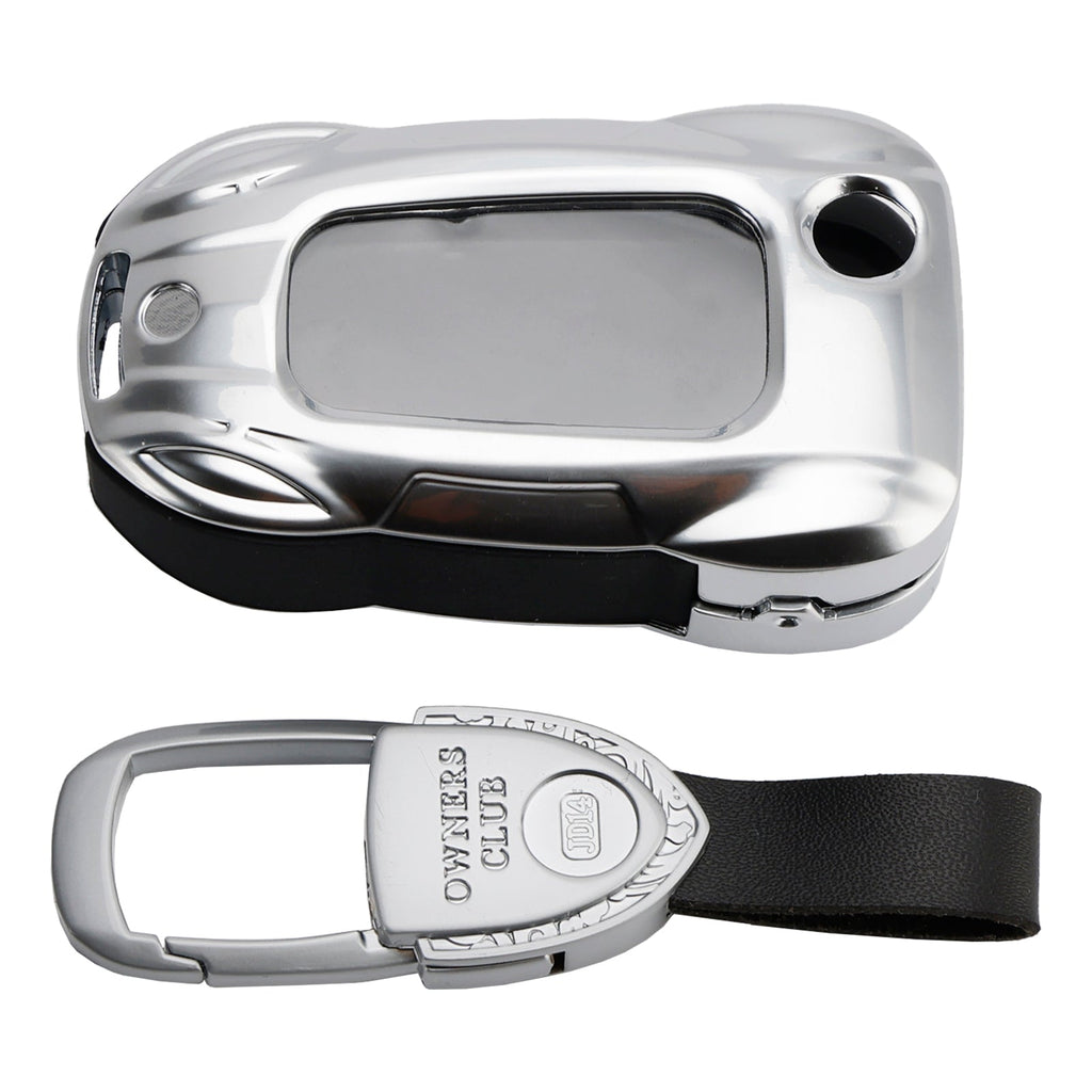 Custodia per chiave auto in pelle argentata, lega di zinco e metallo, compatibile con VW Polo Skoda.