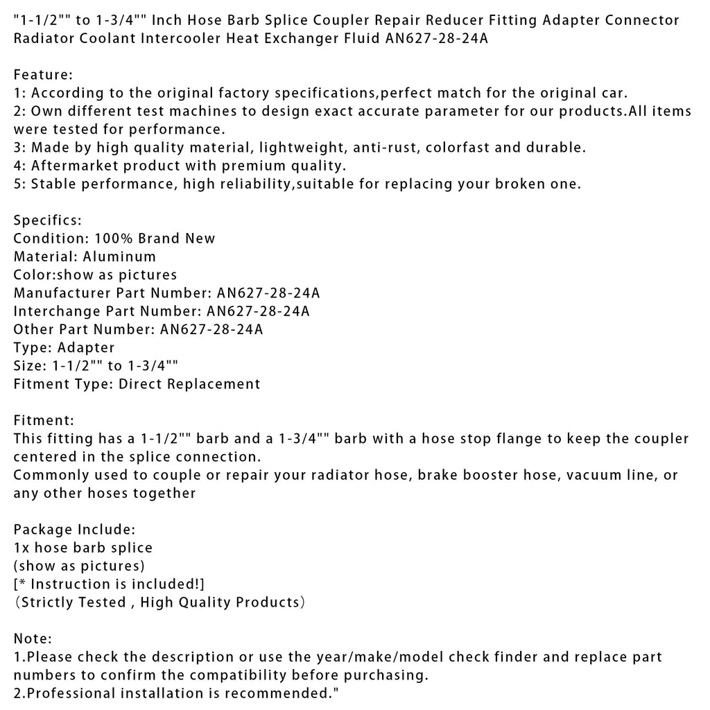 Raccordo a spina da 1-1/2"2"" a 1-3/4"" per tubo flessibile da 38 mm a 40 mm, raccordo riduttore, adattatore, connettore, radiatore, liquido di raffreddamento, intercooler, scambiatore di calore, fluido AN627-28-24A
