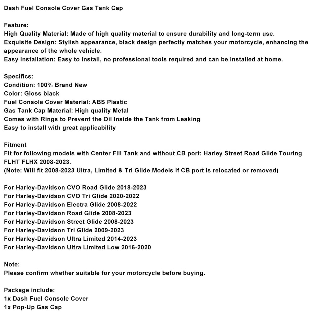 Adatto ai seguenti modelli con serbatoio di riempimento centrale e senza porta CB : Harley Street Road Glide Touring FLHT FLHX 2008-2023.