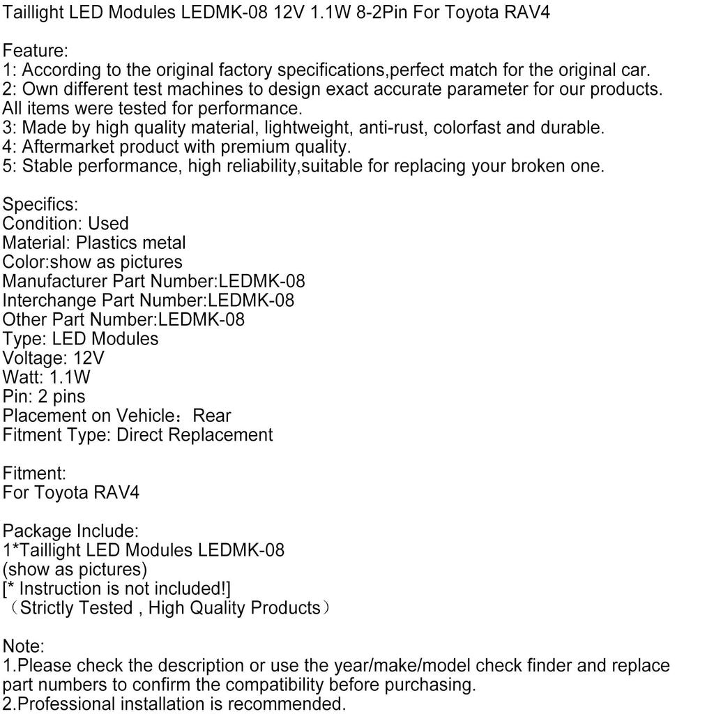 Moduli di luci posteriori a LED LEDMK-08 12V 1,1W 8-2 pin per Toyota RAV4