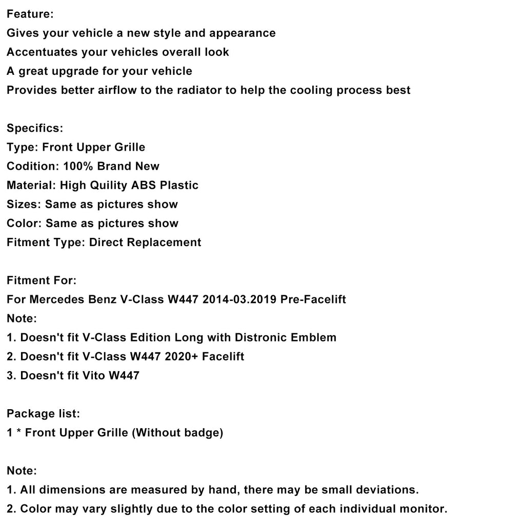 Griglia anteriore superiore per Mercedes Benz Classe V W447 2014-03.2019