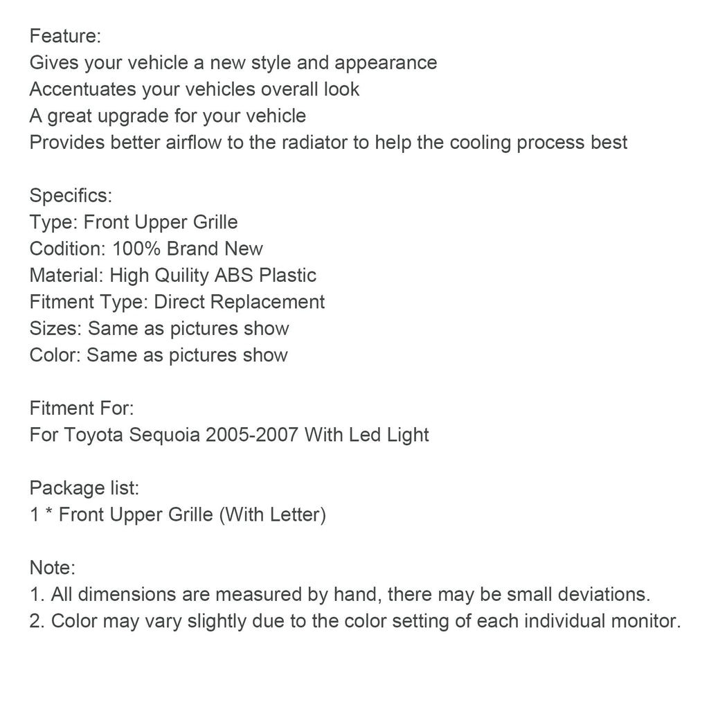 Griglia paraurti anteriore nero opaco compatibile con Toyota Sequoia 2005-2007 con illuminazione a LED