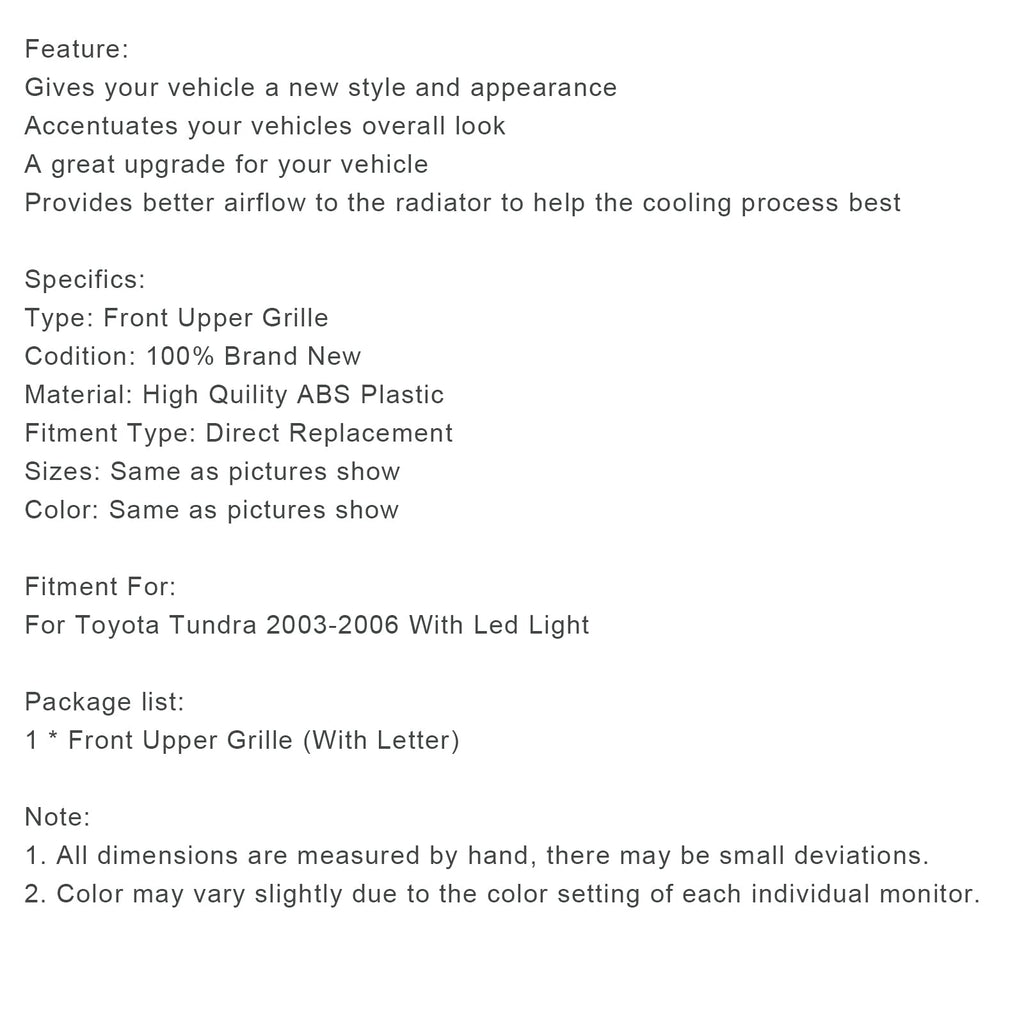 Griglia paraurti anteriore nero opaco compatibile con Toyota Tundra 2003-2006 con luci