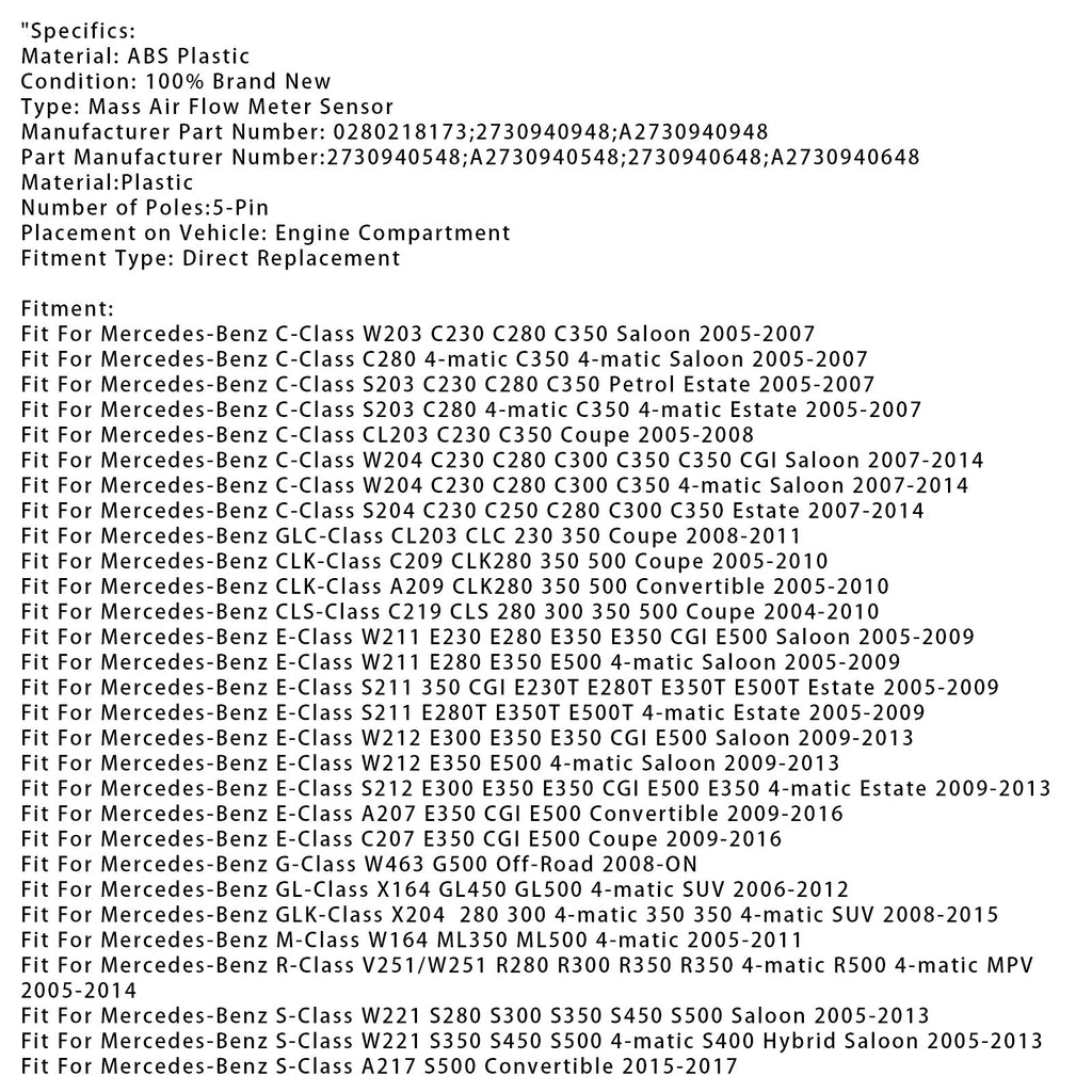Sensore del flussometro di massa d'aria per Mercedes-Benz E350 C280 C350 ML350 0280218173
