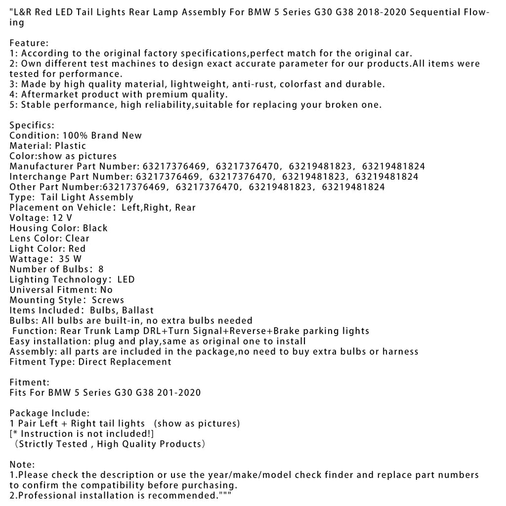 Gruppo ottico posteriore a LED rosso L&R per BMW Serie 5 G30 G38 2018-2020 a flusso sequenziale
