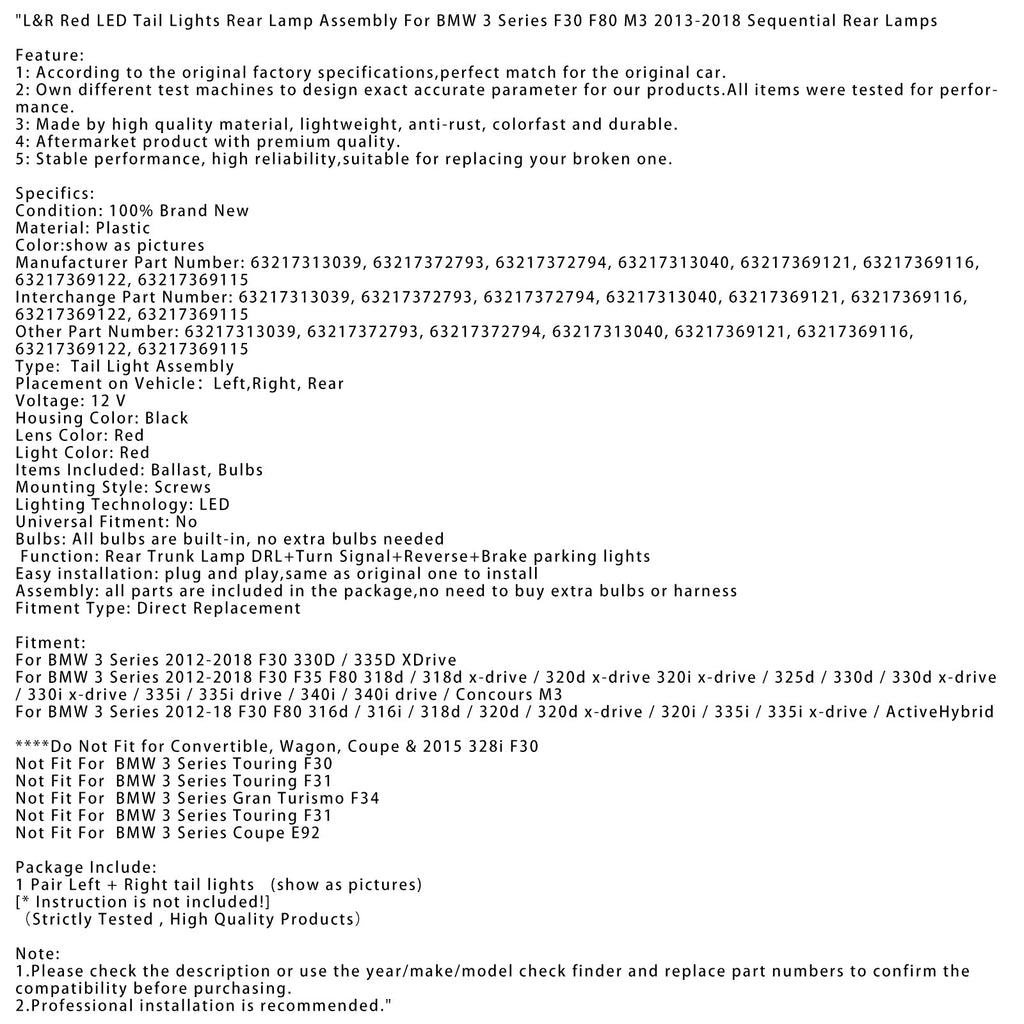 Per BMW Serie 3 2012-2018 F30 F35 F80 318d/318d x-drive/320d x-drive 320i x-drive/325d/330d/330d x-drive/330i