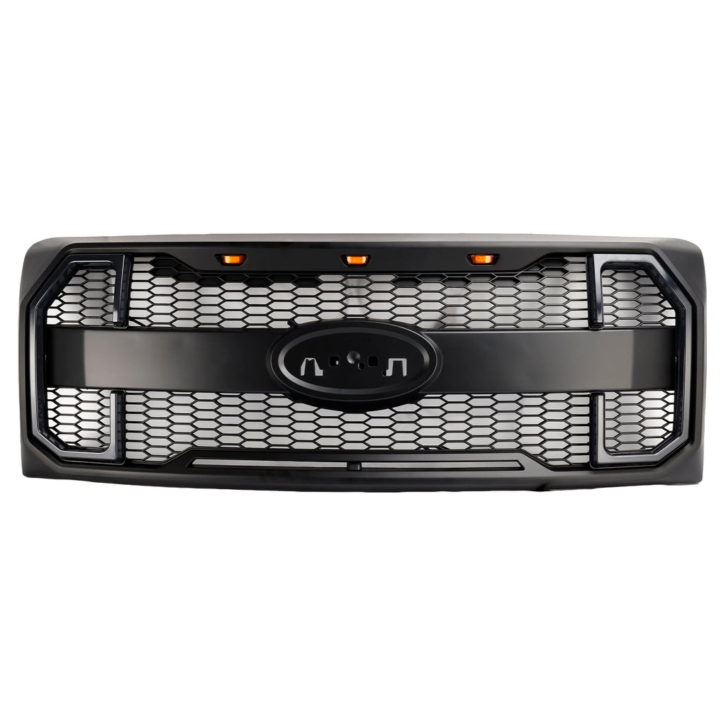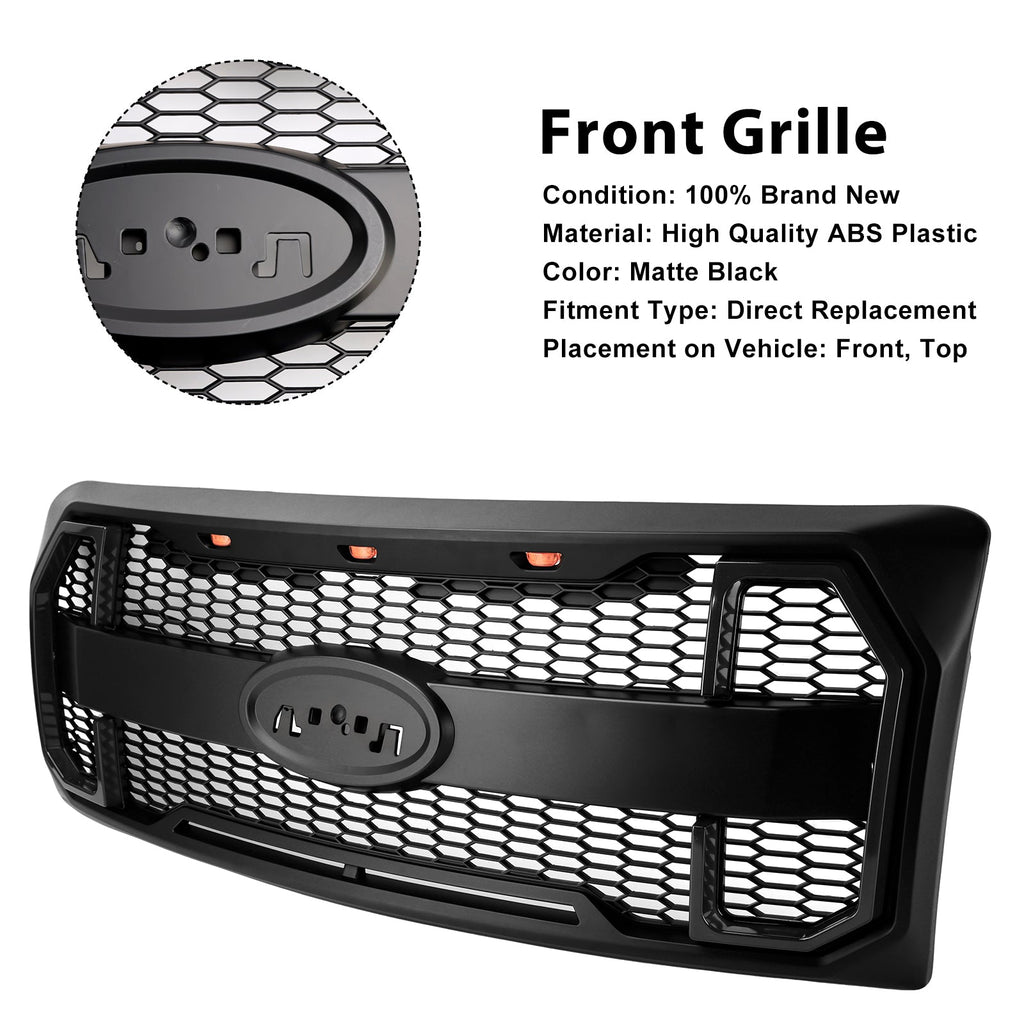 Griglia paraurti anteriore Raptor Style nero opaco per Ford F150 2009-2014 con LED