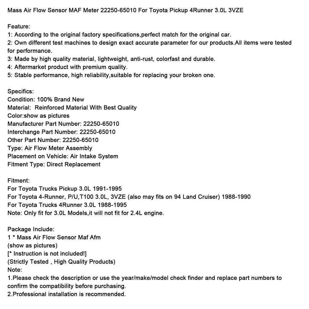 Sensore di portata d'aria di massa (MAF) 22250-65010 per Toyota Pickup 4Runner 3.0L 3VZE