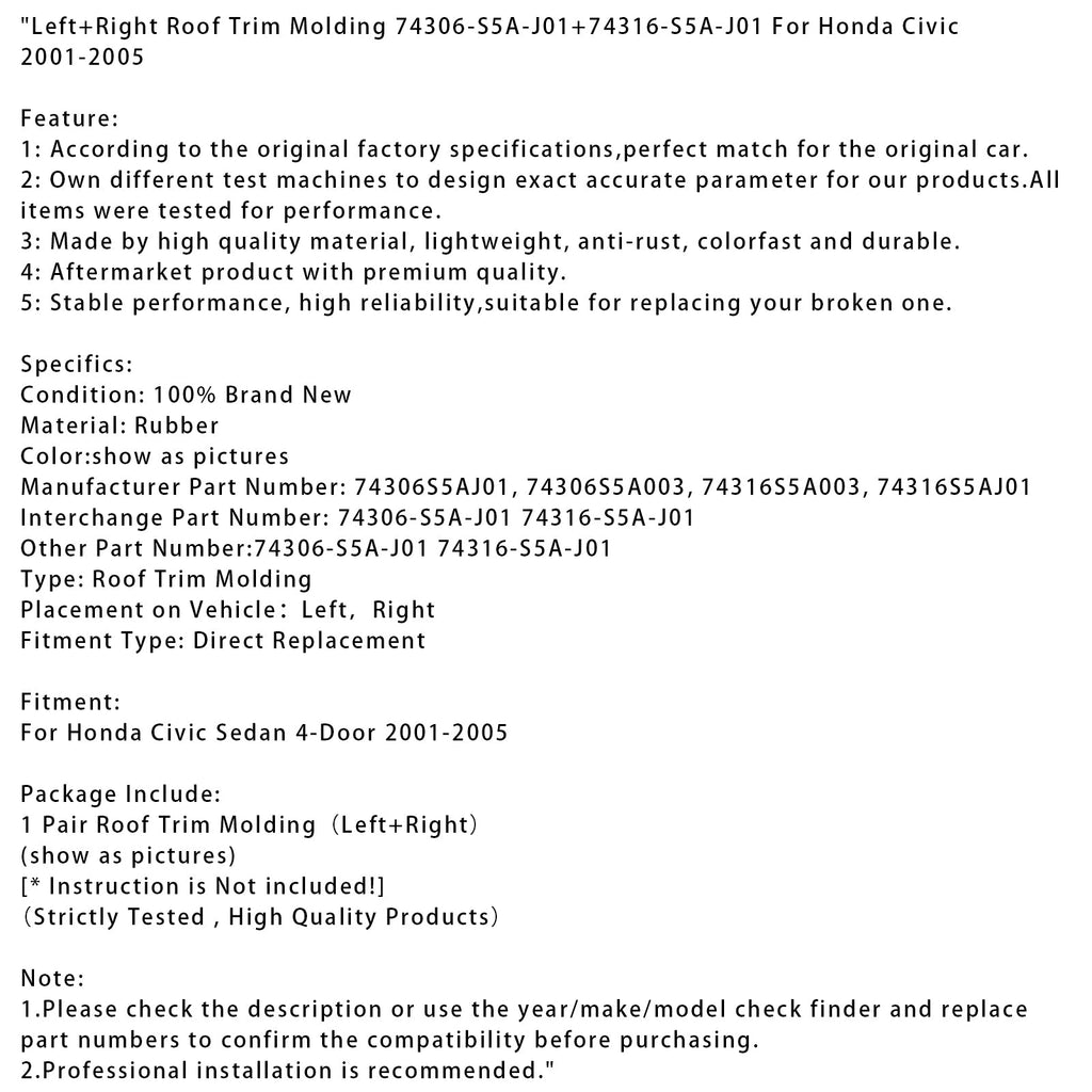 Modanature del tetto sinistra e destra 74306-S5A-J01+74316-S5A-J01 compatibili con Honda Civic 2001-2005