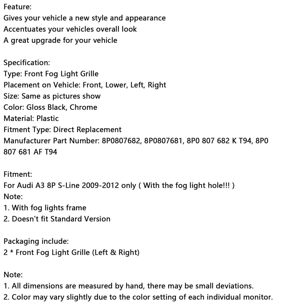 Griglia di copertura fendinebbia paraurti anteriore a nido d'ape per Audi A3 8P S-Line 2009-2012