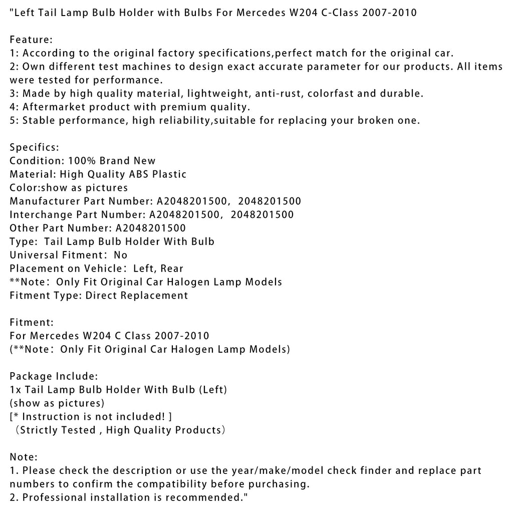 Portalampada posteriore sinistro con lampadine per Mercedes W204 Classe C 2007-2010
