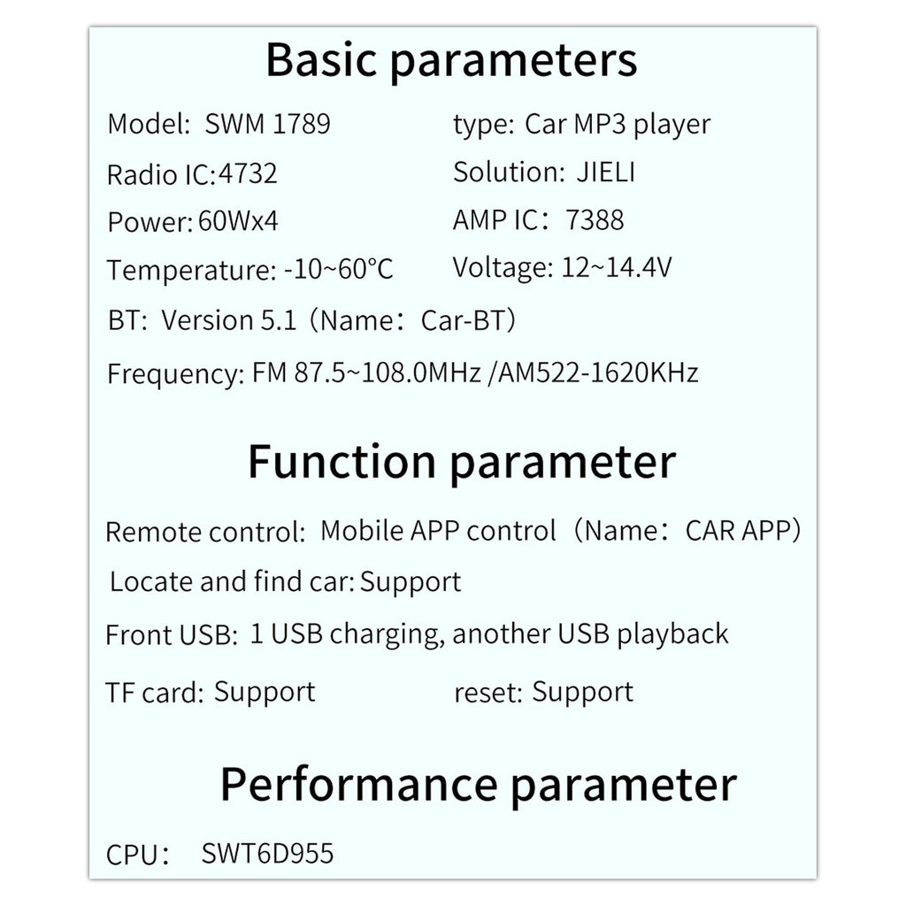 Versione Bluetooth: versione 5.1 (nome predefinito: Car-BT)