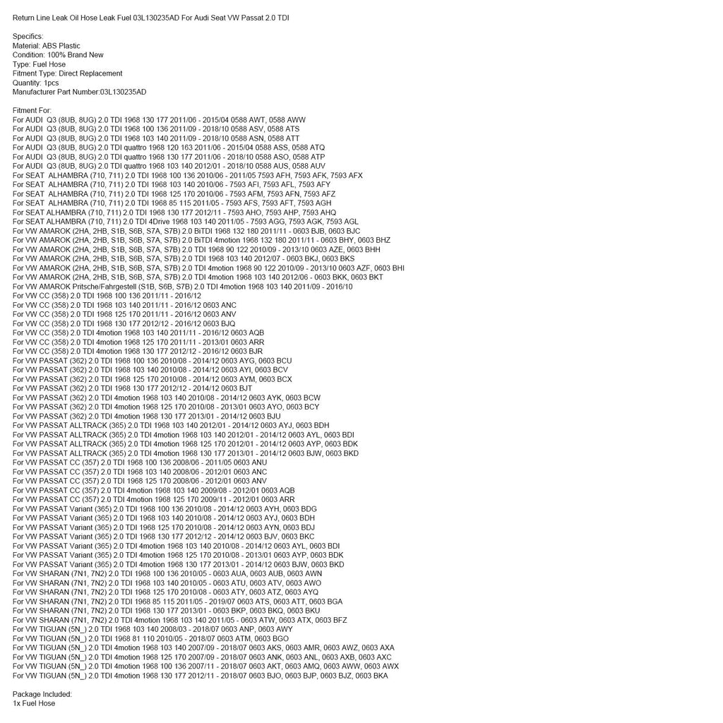 Perdita tubo di ritorno olio, perdita carburante 03L130235AD per Audi, Seat, VW, Passat 2.0 TDI