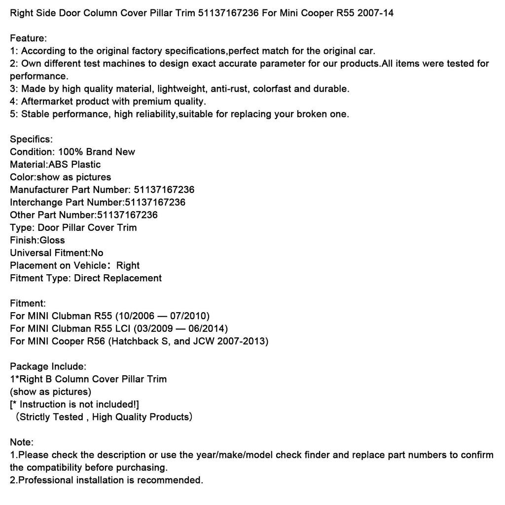 Rivestimento del montante della portiera destra 51137167236 per Mini Cooper R55 2007-14