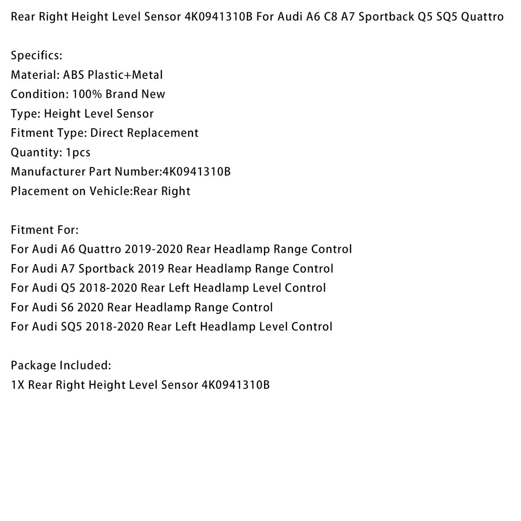 Sensore di livello posteriore destro 4K0941310B per Audi A6 C8 A7 Sportback Q5 SQ5 Quattro