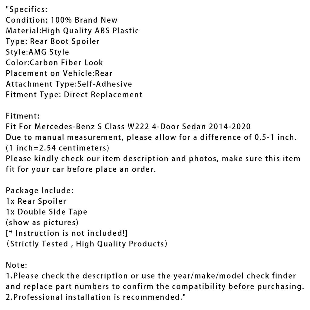 Spoiler posteriore in fibra di carbonio per Mercedes-Benz Classe S W222 2014-2020