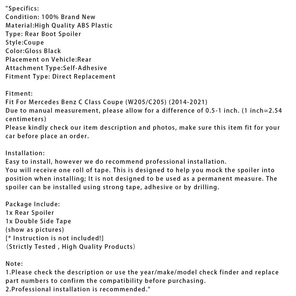 Spoiler posteriore nero lucido per Mercedes-Benz Classe C W205 Coupé 2014-2021