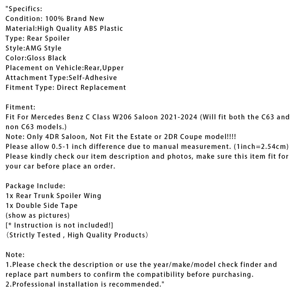Spoiler posteriore nero lucido per Mercedes-Benz Classe C W206 Stile AMG 2021-2024