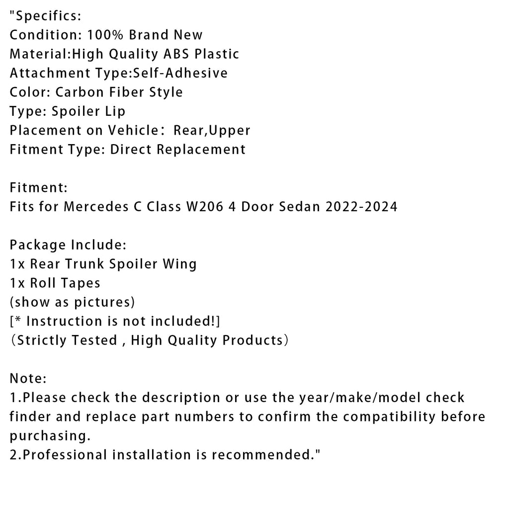 Spoiler posteriore per bagagliaio in fibra di carbonio per Benz W206 C63S (2022-2024)