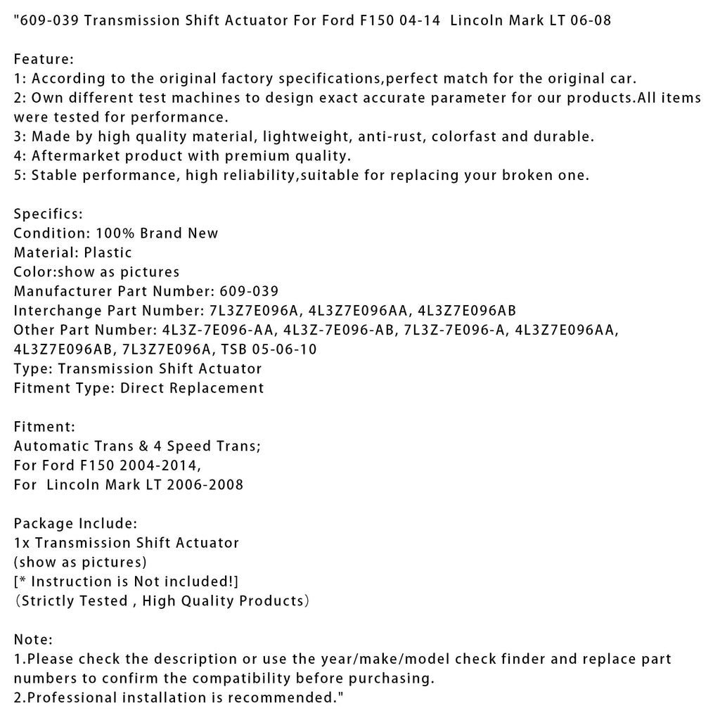 Transmissieschakelactuator 609-039 voor Ford F150 2004-2014 en Lincoln Mark LT 2006-2008