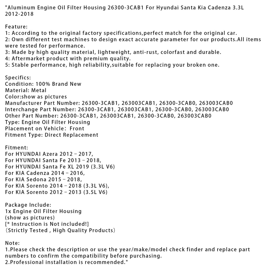 Aluminium motoroliefilterhuis 26300-3CAB1 compatibel met Hyundai Santa Kia Cadenza 3.3L 2012-2018