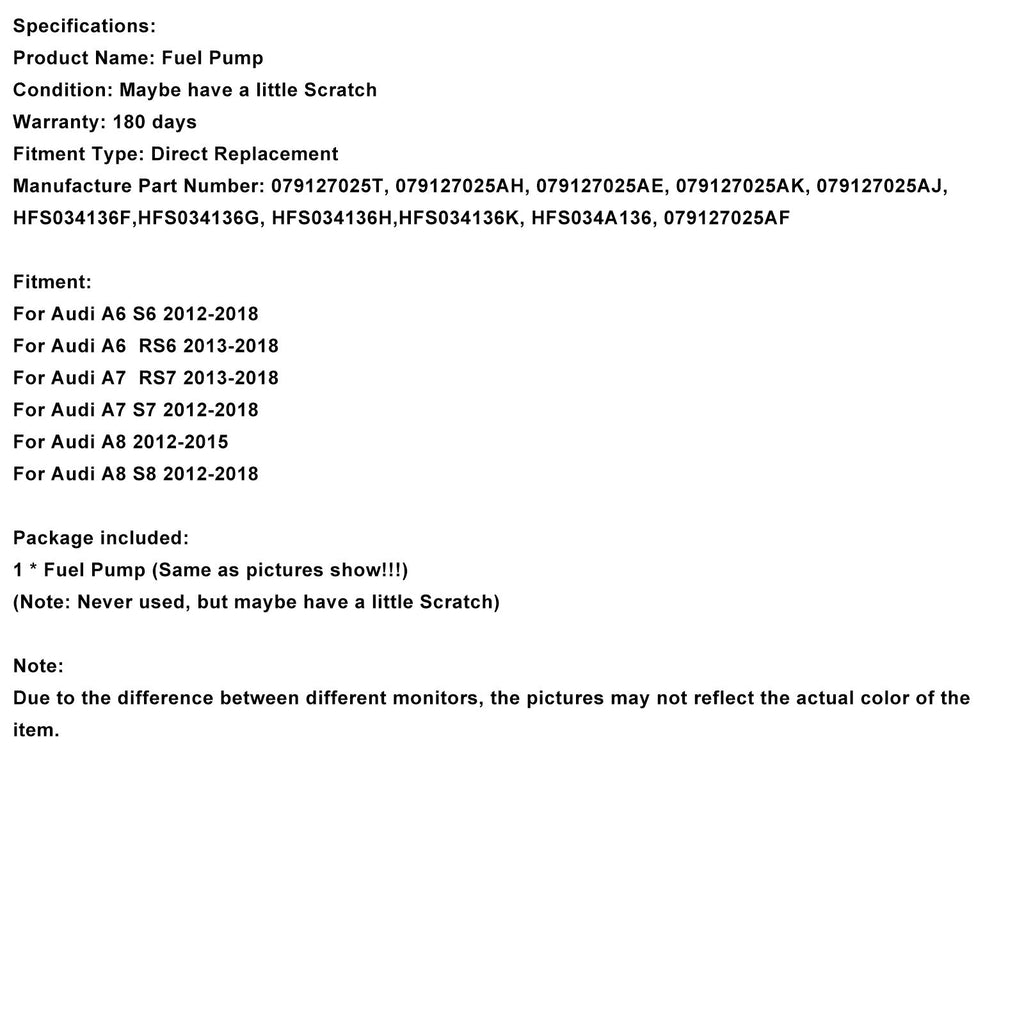 Hogedrukbrandstofpomp 079127025 compatibel met Audi S6, S7, A8, S8, RS6 en RS7 4.0 TFSI