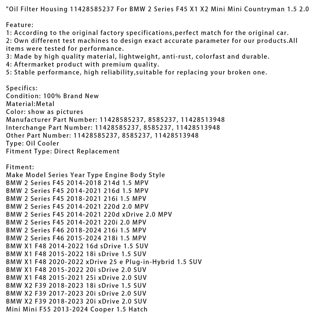 Oliefilterbehuizing 11428585237 voor BMW 2 Serie F45 X1 X2 Mini Countryman 1.5 2.0