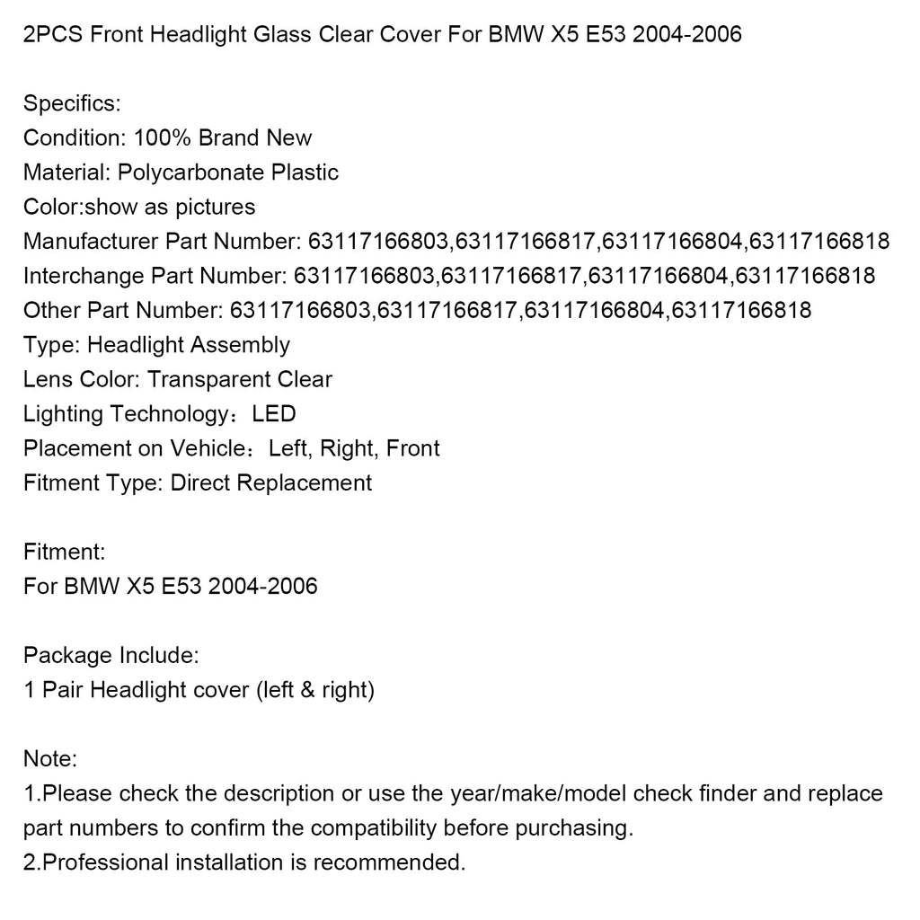 Set van 2 transparante koplampkappen voor BMW X5 E53 2004-2006